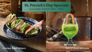Come on down for our weekend specials: Corned Beef Sliders and the Pot O' Gold Mimosa!
